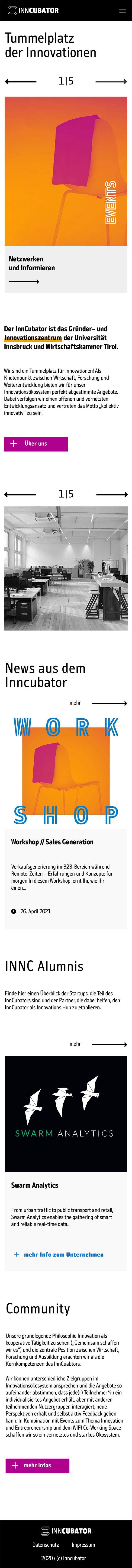 Der Inncubator entschied sich für eine Auffrischung der eigenen Corporate Identity. Im Zuge dessen entstanden neue Keyvisuals, Farben, Schriftarten, Printsujets und vieles mehr (umgesetzt von unseren Freunden der Agentur “Himmel“). Das Design der Website, angelehnt an die neue CI, durften wir umsetzen.